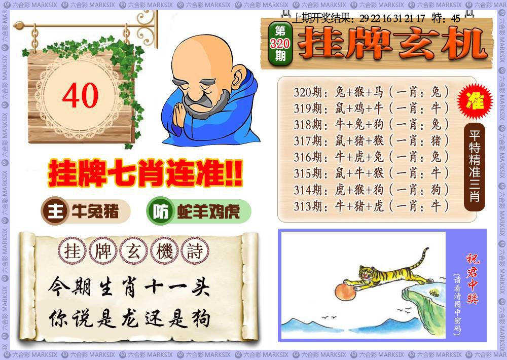 | 320期:精准⑥{狗猴龙牛虎马}开:?00准 |